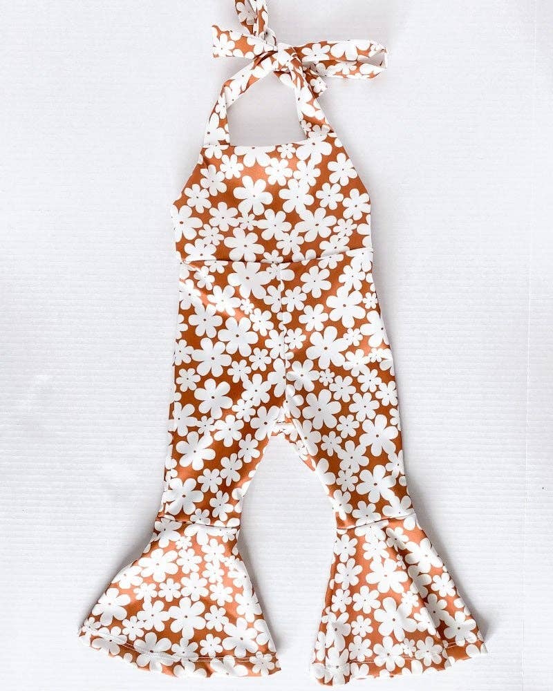 Get ready for Andi! This bell-bottoms jumpsuit is the perfect way to slay this season. With the halter neckties, it’s our go-to product for every newborn and toddler. The fit is comfortable and modern, so pair it with her favorite cardigan, and get ready to jump into trend!! FIT: This Item is running true to size. FABRIC & CARE: * 95% polyester, 5% spandex * Imported * Lay Flat to Dry
